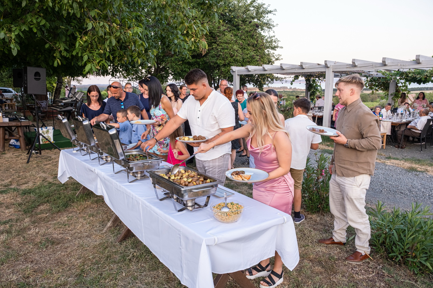 Szeretnénk megköszönni a varázslatos hétvégét, amit nálatok töltöttünk a násznépünkkel együtt. A vendégszeretet valóban baráti volt, már az esküvőhöz vezető úton is és ezt érkezésünkkor az apartmanok is hűen tükrözték. A kacsacomb azóta legendássá vált a vendégek körében, többen pedig ráébredtek, hogy mégis szeretik a bort. A panoráma és a birtok hangulata magáért beszél, mindehhez fantasztikus időt sikerült kifognunk. Attila egy ékszerdobozt hozott létre egy olyan csapattal, akiknek nem lehetünk elég hálásak! Mindezt egy olyan környezetben tette, ahol megférnek egymás mellett a meghatódott könnyek és a felhőtlen nevetés, úgy hisszük ez a Tagyon esküvők varázsa. Biztosan találkozunk még,
